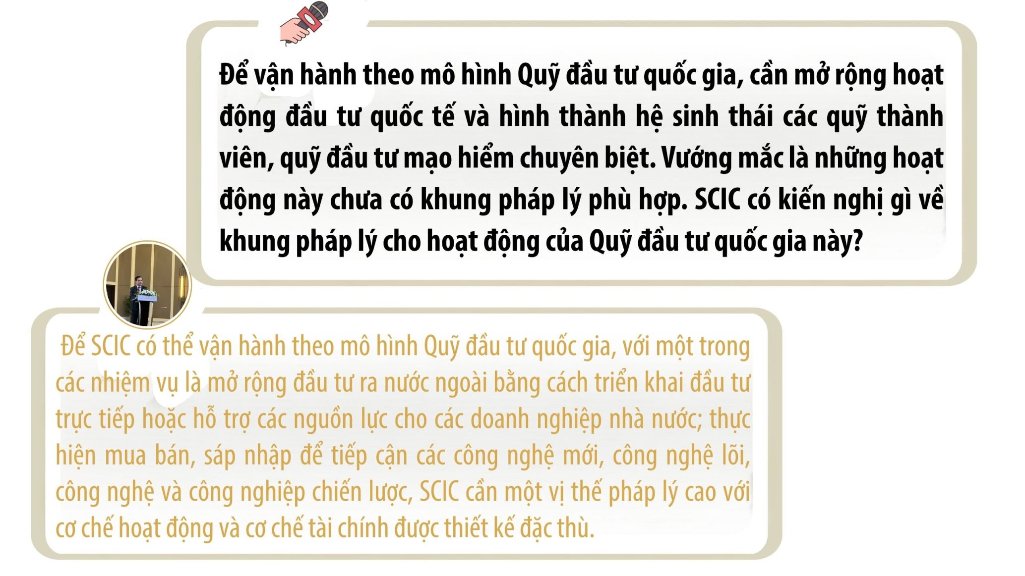 Khi SCIC chuyển sang vận hành dưới mô hình Quỹ đầu tư quốc gia chuyên nghiệp, quyền chủ động của doanh nghiệp sẽ tiếp tục được mở rộng, đặc biệt trong các quyết định về sản xuất-kinh doanh, đầu tư, đổi mới công nghệ, ... SCIC thực hiện quyền của chủ sở hữu thông qua Hội đồng quản trị/Hội đồng thành viên, người đại diện vốn, trên nguyên tắc phân cấp, phân quyền rõ ràng, tôn trọng tính tự chủ và tự chịu trách nhiệm của doanh nghiệp theo thông lệ quốc tế.