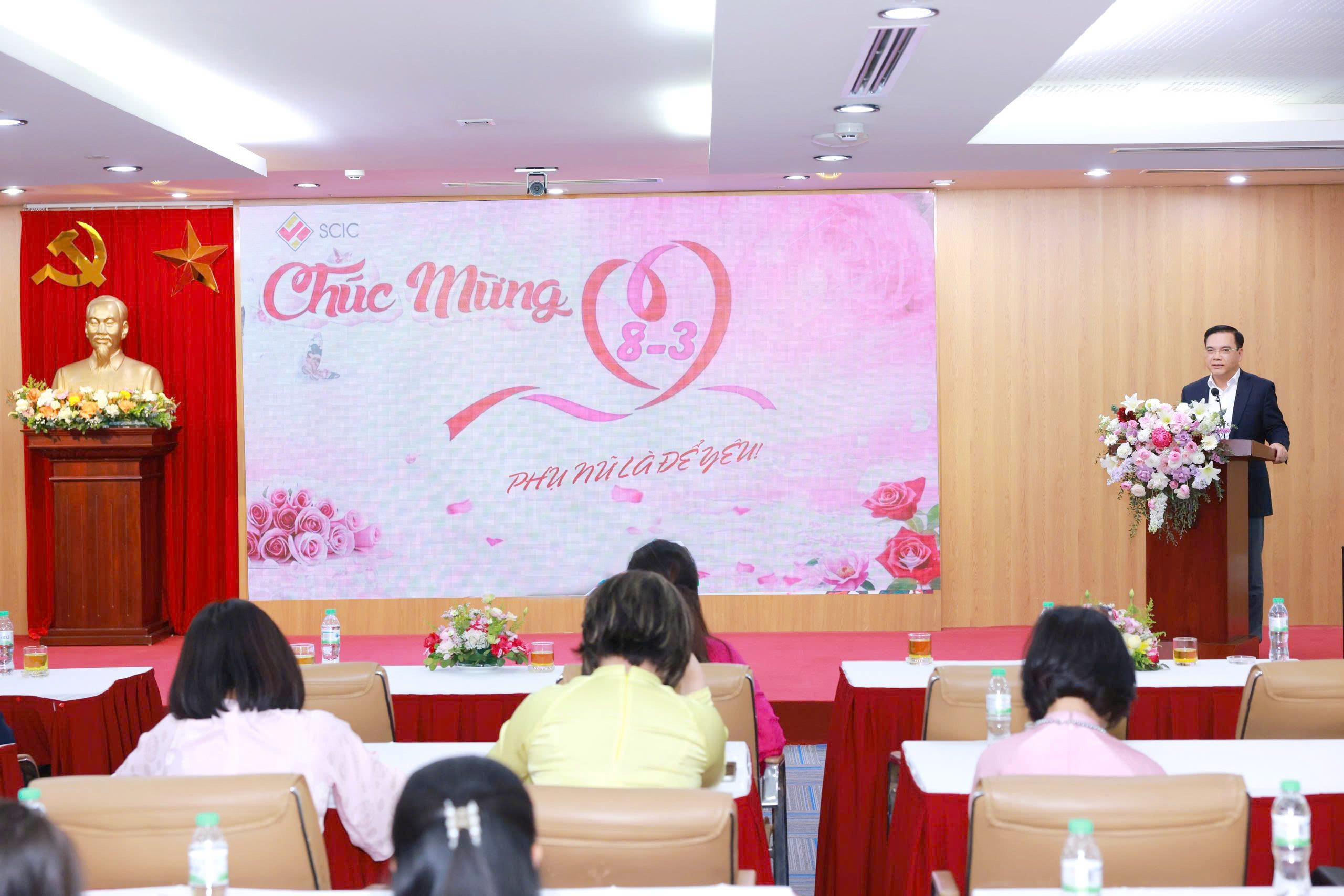 Phát biểu tại buổi lễ, thay mặt Ban lãnh đạo Tổng công ty, đồng chí Nguyễn Chí Thành – Bí thư Đảng uỷ, Chủ tịch Hội đồng thành viên gửi lời chúc mừng tốt đẹp nhất tới toàn thể chị em nhân kỷ niệm 116 năm ngày Quốc tế Phụ nữ 8/3, đây là dịp để chúng ta ôn lại truyền thống vẻ vang, rất đáng tự hào của phụ nữ trên thế giới cũng như tại Việt Nam và SCIC và cũng là một dấu mốc đặc biệt khi SCIC đang hướng tới kỷ niệm 20 năm thành lập.